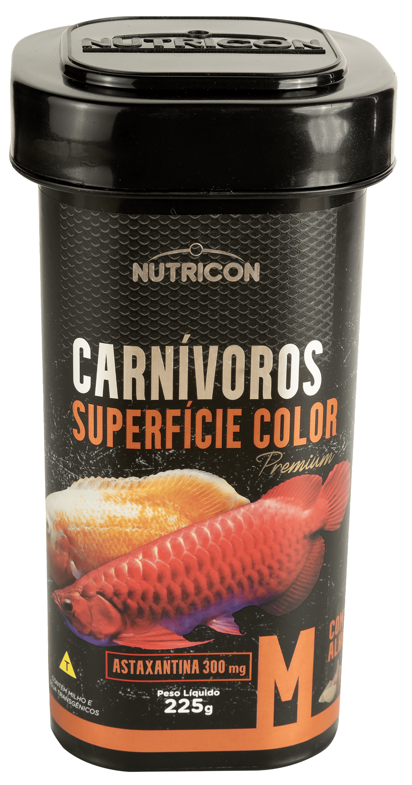 Farinha de peixes, fubá de milho*, farinha de salmão, farinha de arroz, farinha de trigo, farinha de larva de mosca soldado negra desidratada (5%), farinha de camarão, farinha de atum, farinha de lula, hidrolisado de peixes, óleo de peixes, glúten de trigo, levedura hidrolisada desidratada e extrato de leveduras, levedura de cana-de-açúcar autolisada e desidratada, ovo em pó, óleo essencial de alho (Allium sativum) (0,5%), vitaminas: Retinol, Ácido Ascórbico Monofosfatado, Colecalciferol, DL-Alfa-Tocoferol, Bissulfito Sódico de Menadiona, Tiamina, Riboflavina, Piridoxina, Cianocobalamina, Niacina, Ácido Pantotênico, Ácido Fólico, Biotina, Cloreto de Colina, Inositol; minerais: Proteinato de cobre, Proteinato de ferro, Proteinato de manganês, Proteinato de cobalto, Iodato de potássio, Proteinato de zinco, Levedura enriquecida com selênio, Cloreto de Sódio, biomassa de microalgas (Schizochytrium sp), L-lisina, L-treonina, parede celular de levedura (0,45%), Bacillus subtilis (CCT 0089), Bifidobacterium bifidum (DSM 20456), Enterococcus faecium (CCT 6646), Lactobacillus acidophilus (CCT 2949), Lactobacillus casei (CCT 1465), Lactobacillus lactis (CCT 1344), Lactobacillus plantarum (ATCC 8014), Pediococcus acidilactici (ATCC 8042), astaxantina (0,03%), extrato de yucca, aluminossilicato de sódio e cálcio, ácido propiônico, ácido acético, ácido fórmico, ácido sórbico, BHA (Butilhidroxianisol), BHT (Butilhidroxitolueno), ácido cítrico e etoxiquina, ureia formaldeído (UFC85).