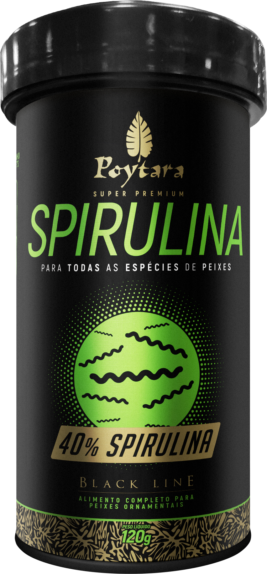 A Spirulina 40% Black Line é um alimento complementar super premium em grânulos, nutricionalmente balanceado, formulado para atender aos requisitos de todas as espécies de peixes de água doce e salgada. Contém apenas ingredientes nobres e de alta digestibilidade, que promovem crescimento e aumento da coloração de todos os tipos de peixes.